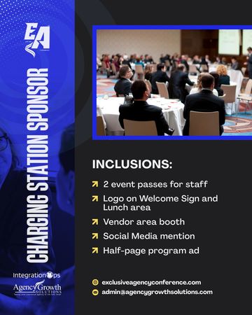 Charging Station Sponsor at EA CON 2026 with logo placement, vendor booth exposure, social mentions, and visibility at Exclusive Agency Conference 2026.