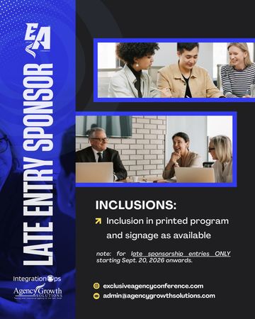Exhibiting Sponsor at EA CON 2026 with branded vendor table, direct attendee engagement, and program ad exposure at Exclusive Agency Conference 2026.